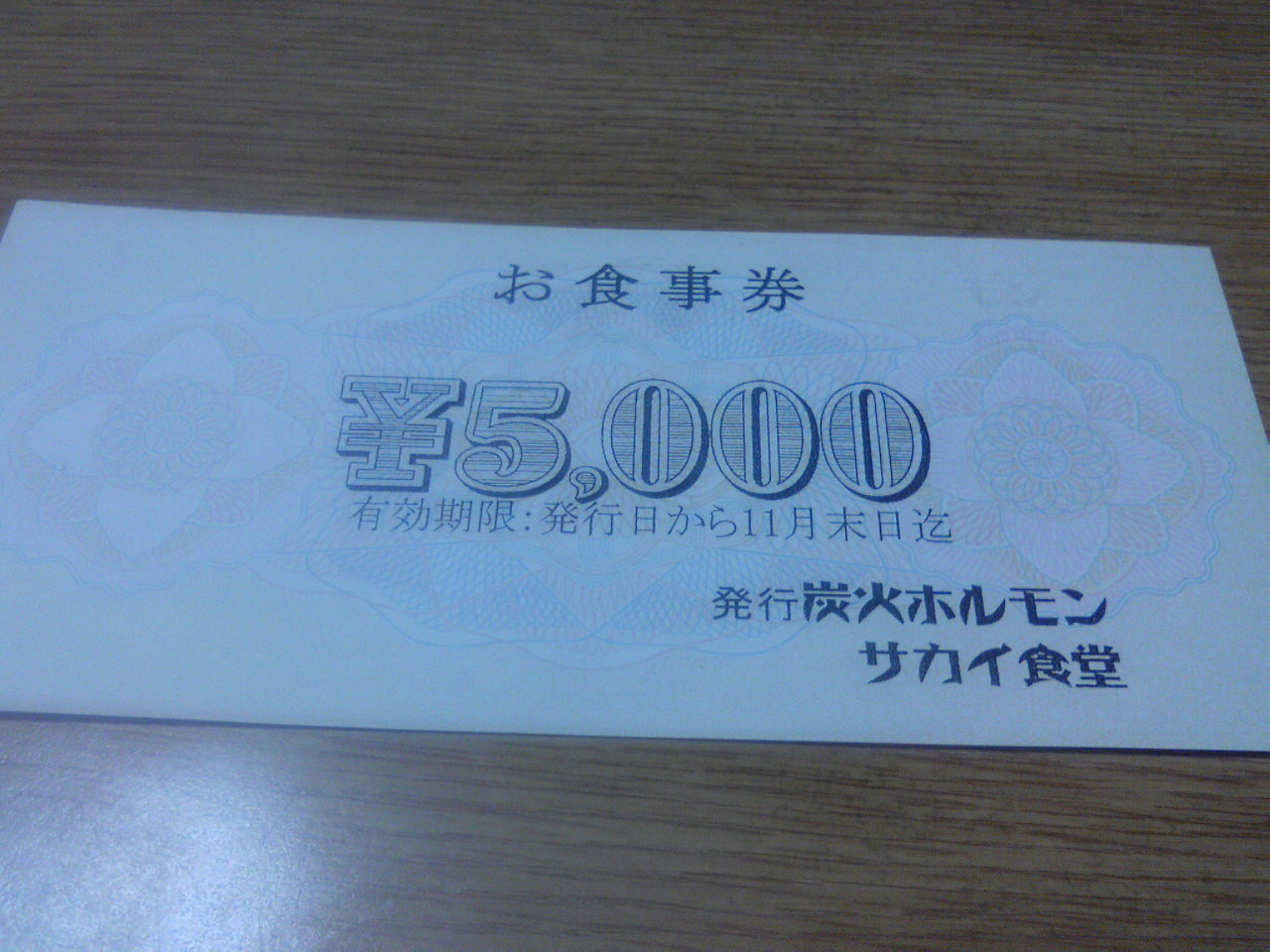 『お食事券 炭火ホルモン サカイ食堂』が届きました。