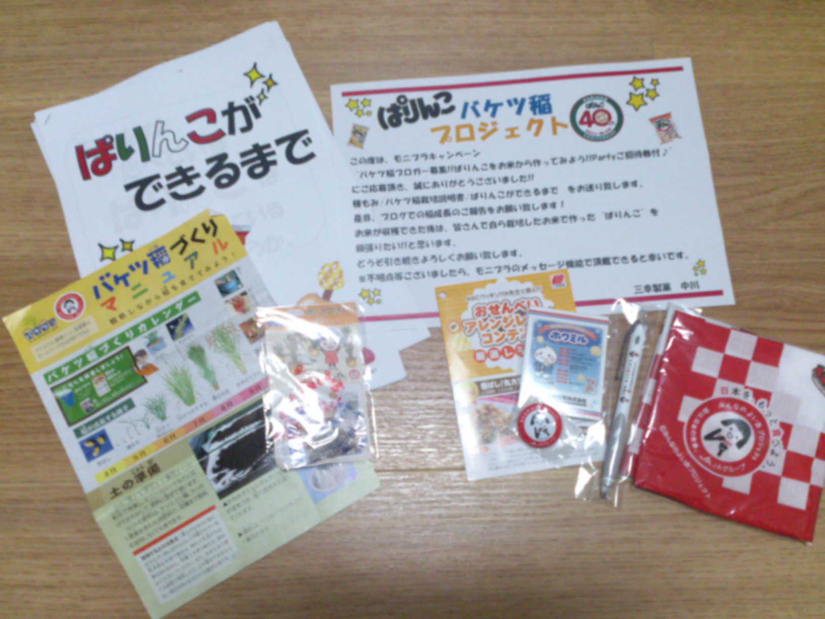 種モミ、肥料、栽培マニュアル、バッチ、ファイルなどが届きました~。