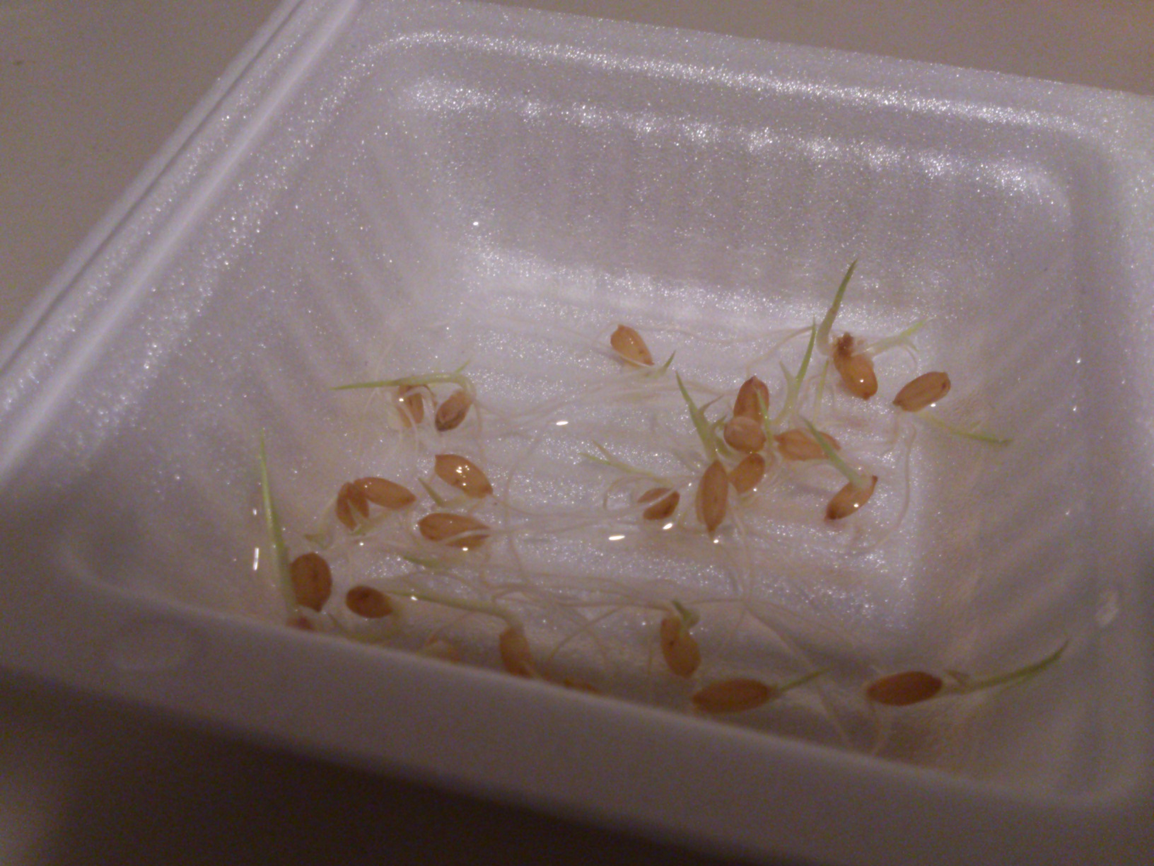 次に種モミをひたひたの水で芽が出るのを待ちます。