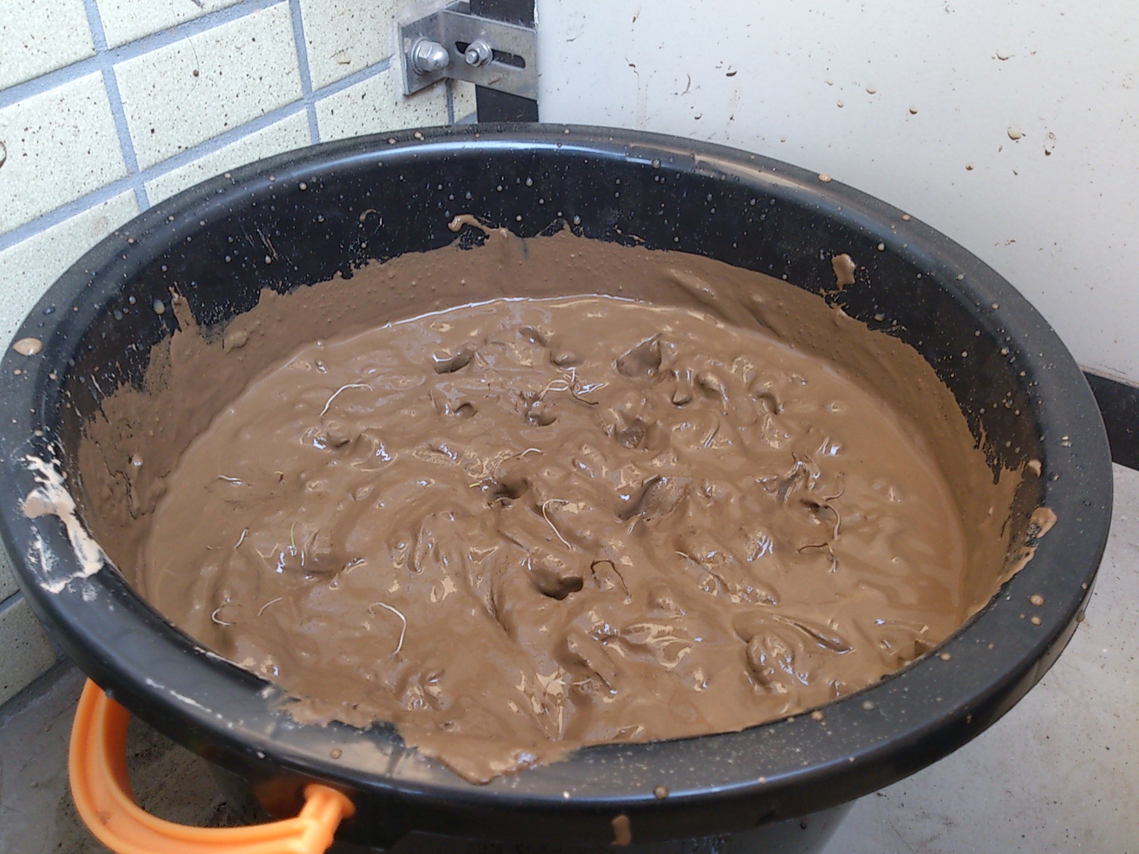 土をすべて入れてしまったので、水を入れたら重くてきちんと混ざっているのかしら?
