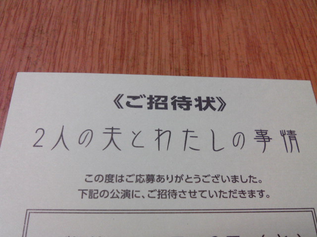 舞台『2人の夫とわたしの事情』の招待状が届きました。